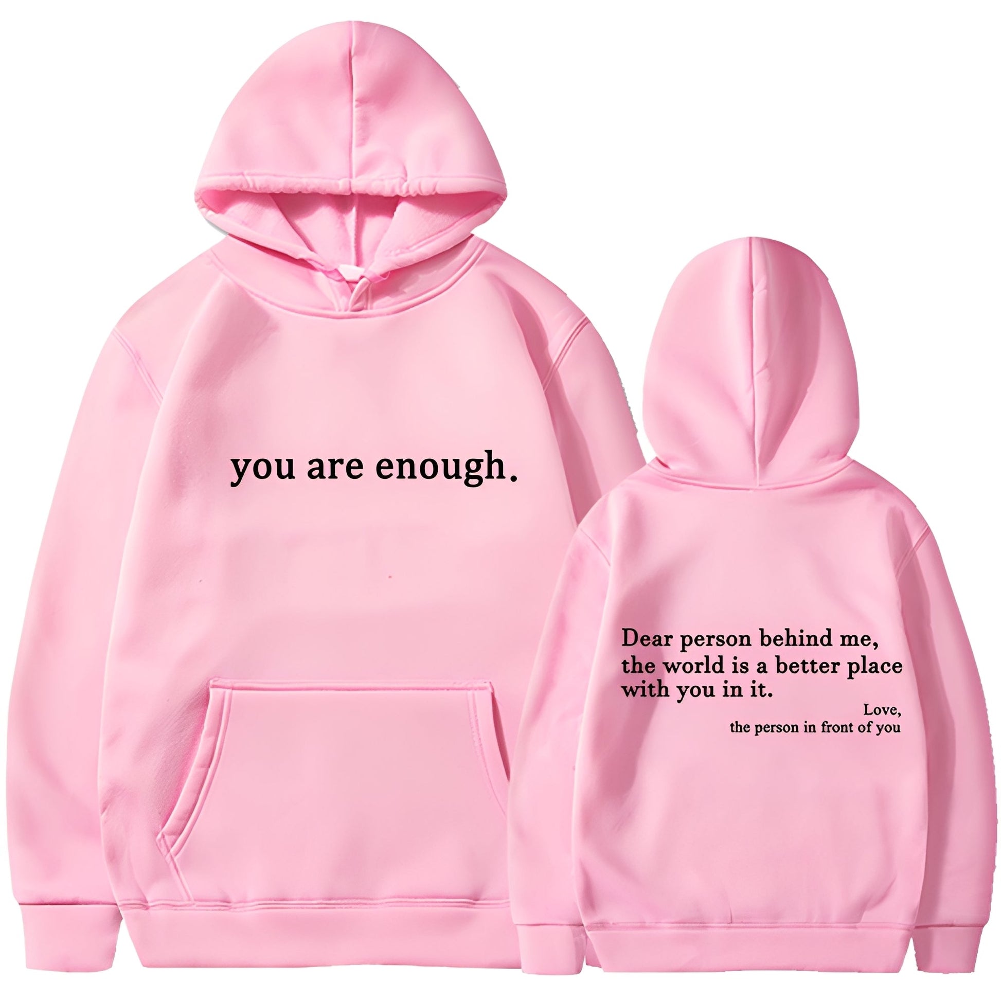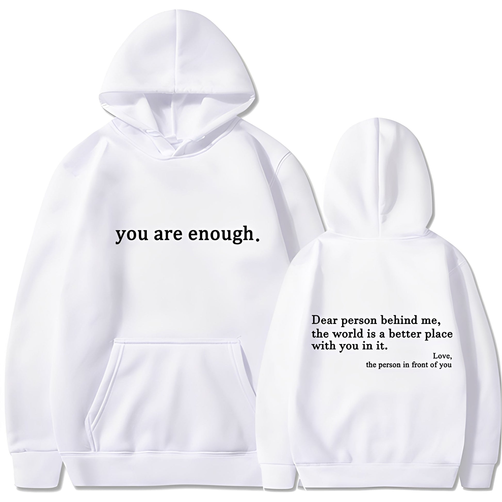 Der Cecilia 'Person hinter mir' Hoodie kombiniert Gemütlichkeit mit einer inspirierenden Nachricht.menAus weichem, hautfreundlichem Material gefertigt, bietet er angenehme Wärme an kühleren Tagen. Der lockere Schnitt und die praktische Kängurutasche machen ihn ideal für Freizeit, Spaziergänge oder entspannte Abende. Besonders ist die freundliche Botschaft auf der Rückseite, die jedem ein Lächeln schenkt.