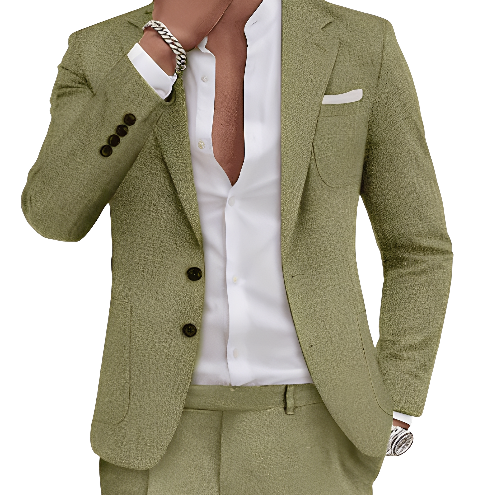 Der Clinton Anzug kombiniert traditionellen Stil mit modernem Flair. Hergestellt aus leichtem Leinen-Mix bietet er ein angenehmes Tragegefühl – ideal für warme Tage oder festliche Anlässe. Sein trendiges Design mit nützlichen Taschen macht ihn sowohl im Job als auch in der Freizeit zu einem echten Blickfang.
