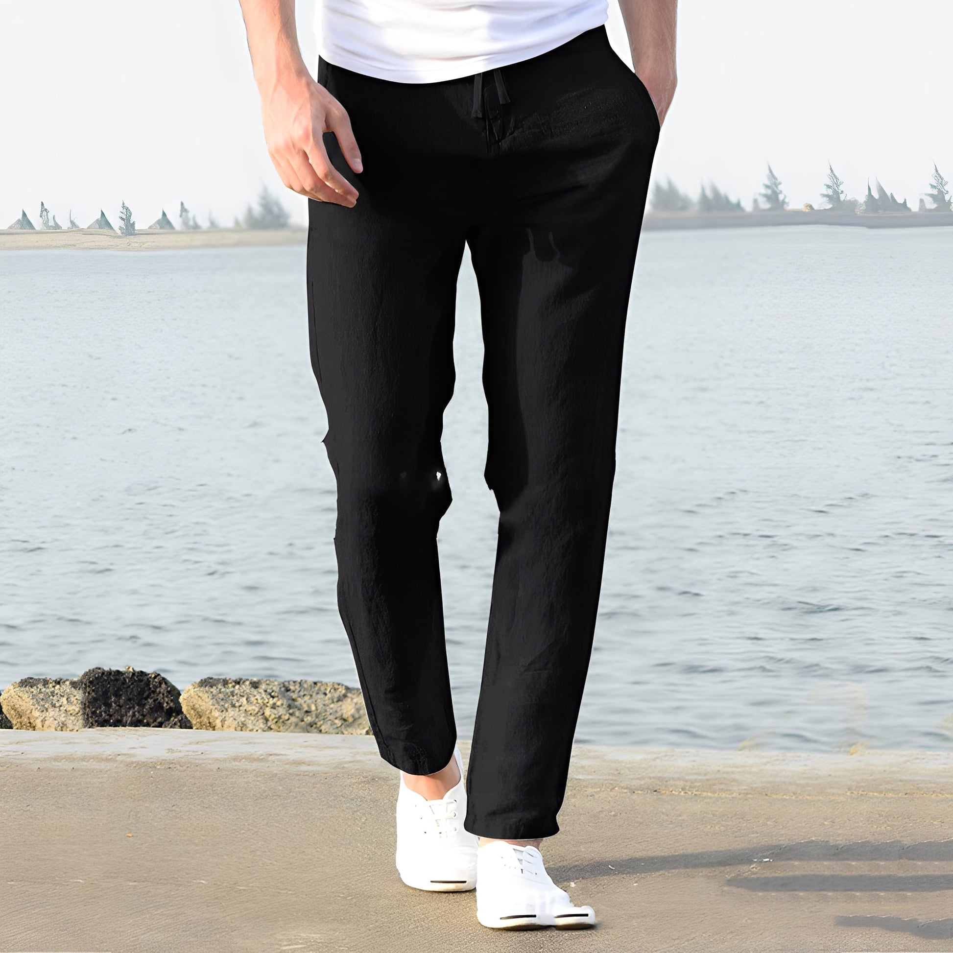 Die „Domenic – Leichte Herren Leinenhose für angenehmen Stil“ vereint leichtes, luftiges Leinen mit einer lockeren Passform – ideal für warme Tage. Der elastische Bund und der Kordelzug sorgen für einen sicheren, angenehmen Halt. Die moderne, etwas schmalere Form sorgt für eine elegante Silhouette. Seitentaschen bieten praktischen Stauraum, während das natürliche Leinen gute Belüftung ermöglicht. Ob Freizeit, Strand oder Abendessen – „Domenic“ ist Ihr idealer Begleiter.Deshalb sollte die „Domenic – Leichte Herren Leinenhose für angenehmen Stil“ in Ihrem Kleiderschrank sein:Bequeme Passform dank elastischem Bund mit Kordelzug – passt sich jeder Bewegung anNatürlicher Leinenstoff bietet bei hohen Temperaturen atmungsaktiven KomfortModernes, leicht schmaler werdendes Bein für einen stilvollen und zeitgemäßen LookDie ideale Leinenhose, die Ihren Sommerstil mühelos ergänzt.