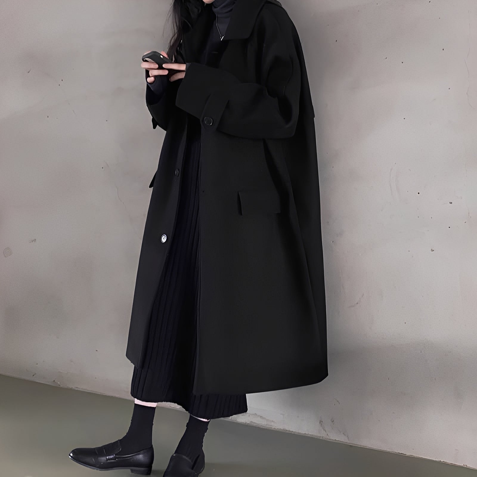 Deshalb sollte der „Estelle - Retro Revers Einreihiger Lockere Mittellange Wollmantel“ in Ihrem Kleiderschrank nicht fehlen: