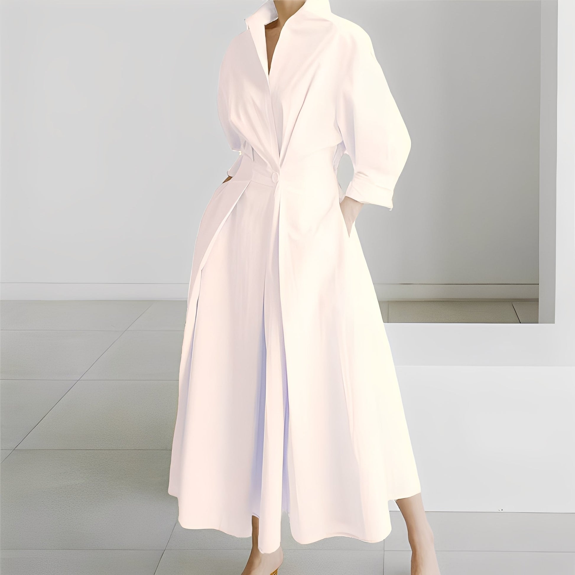 Liora – Midi-Hemdblusenkleid mit kurzen Ärmeln