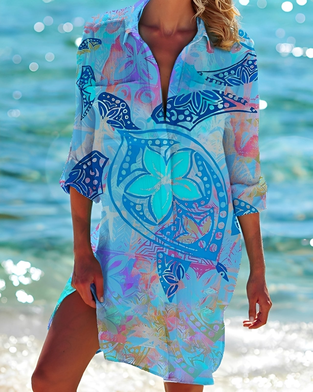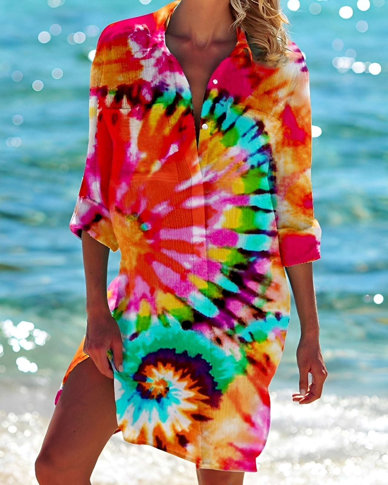 Lina – Damenkleid mit V-Ausschnitt und 3/4-Ärmeln