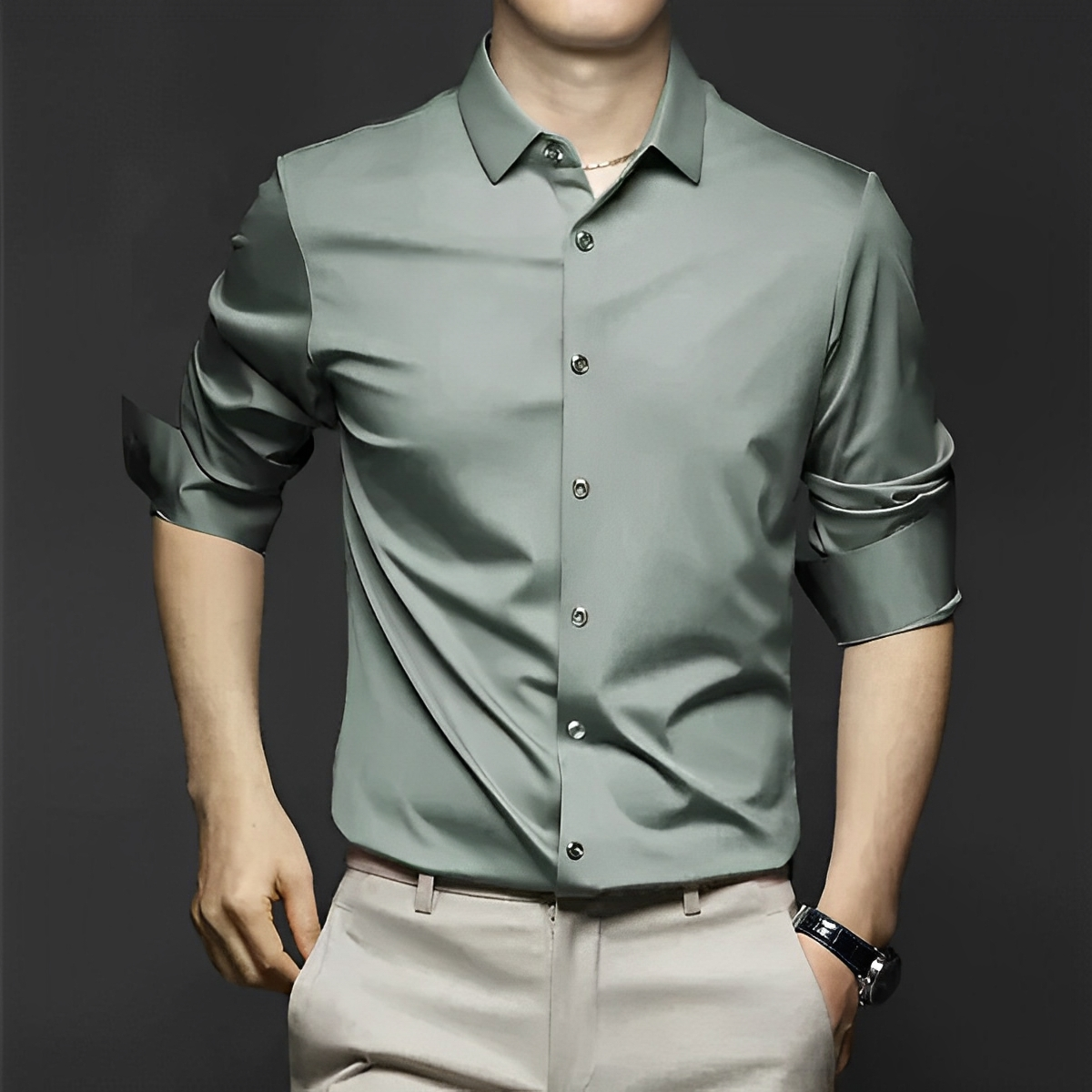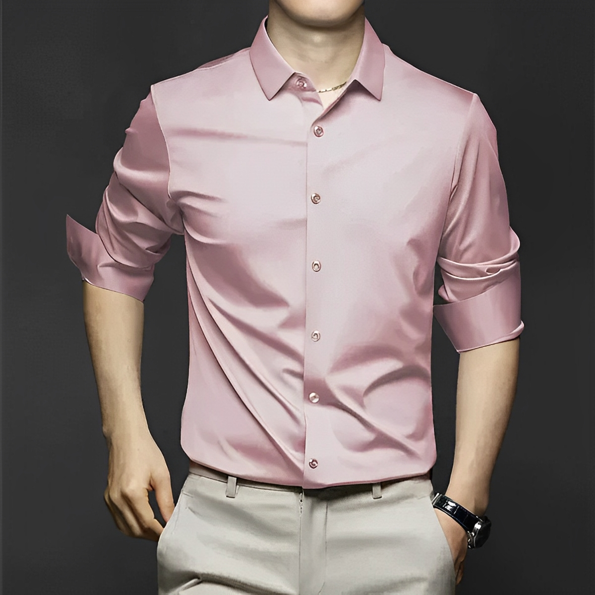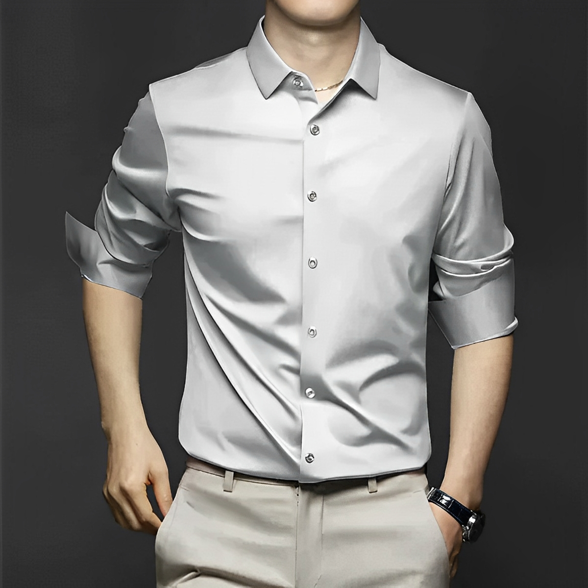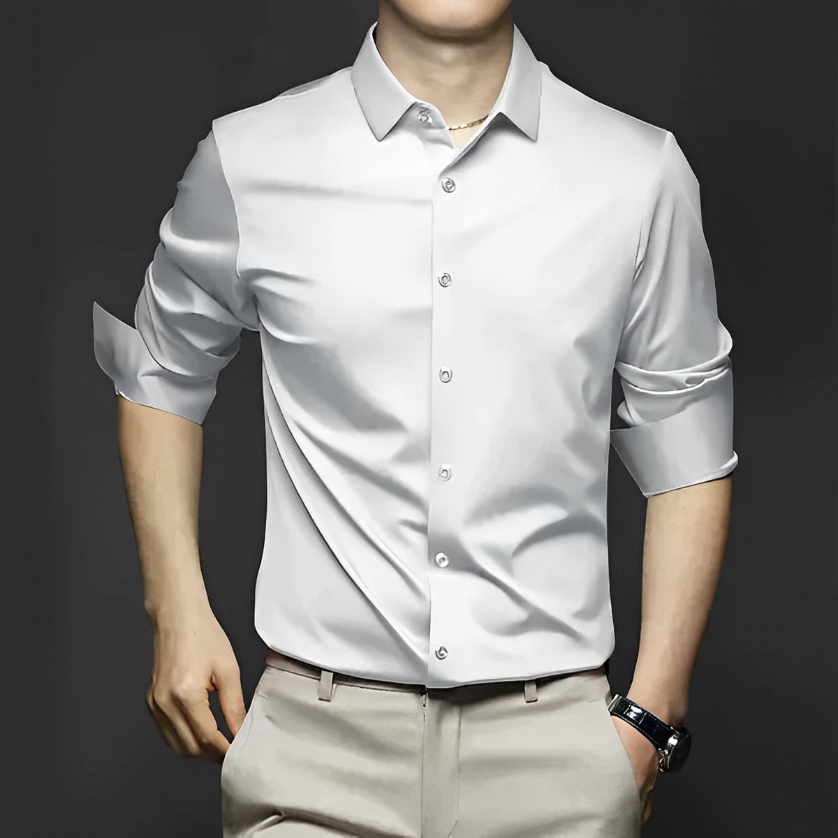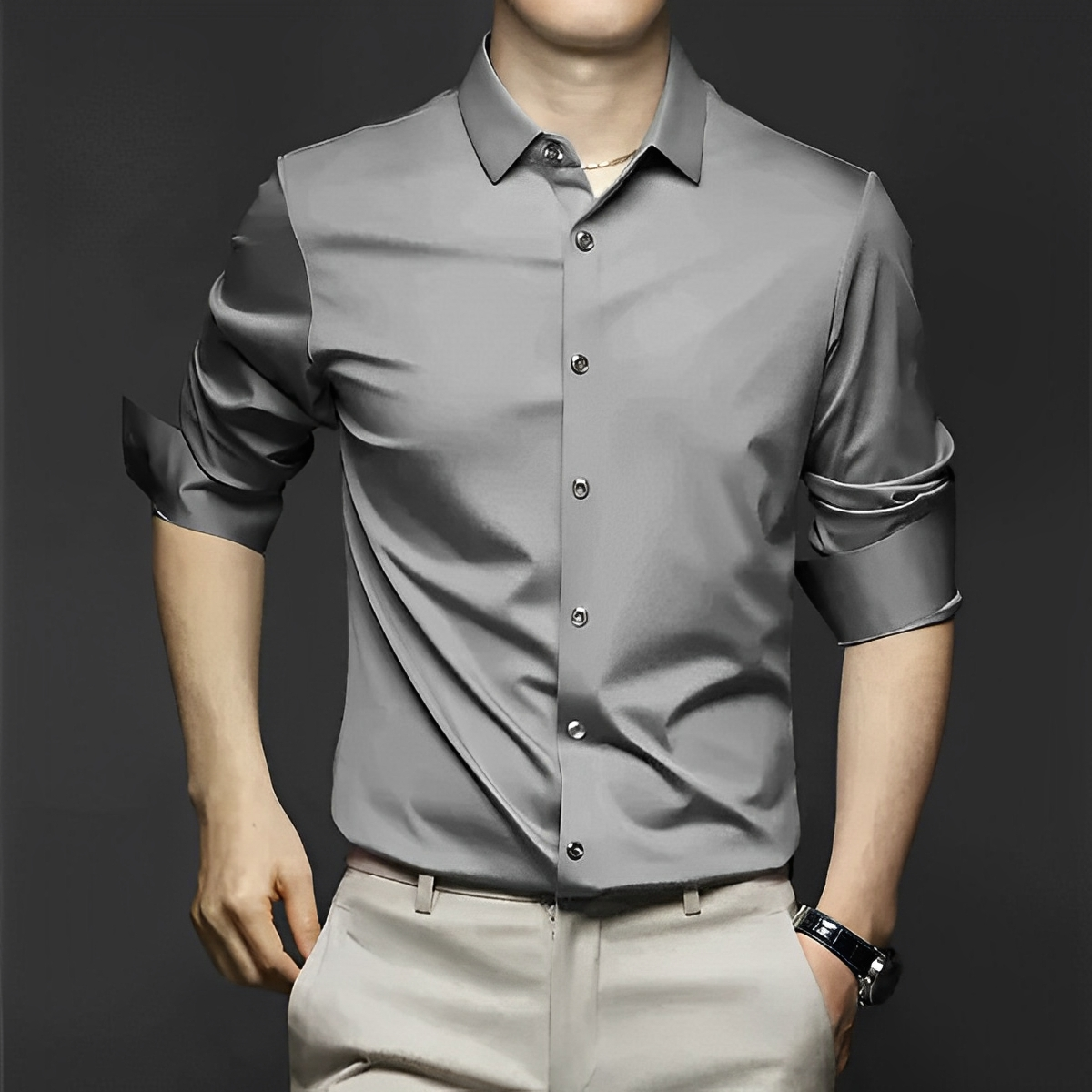 Ergänzen Sie Ihre Garderobe mit diesem knitterfreien Hemd—perfekt für einen schicken, mühelosen Stil!